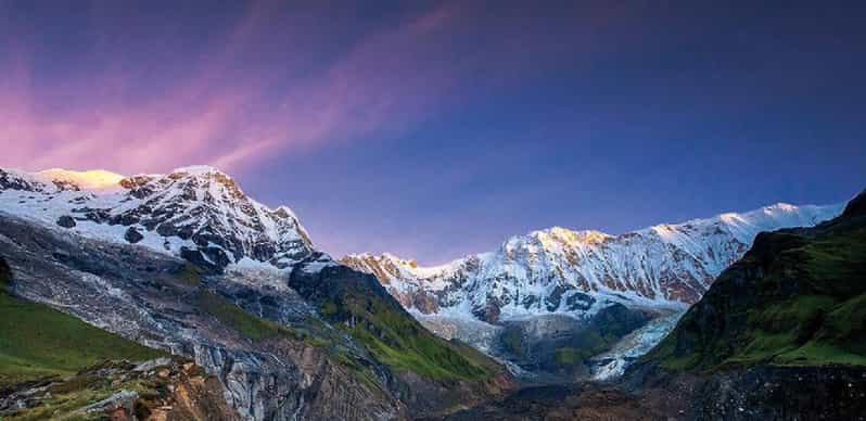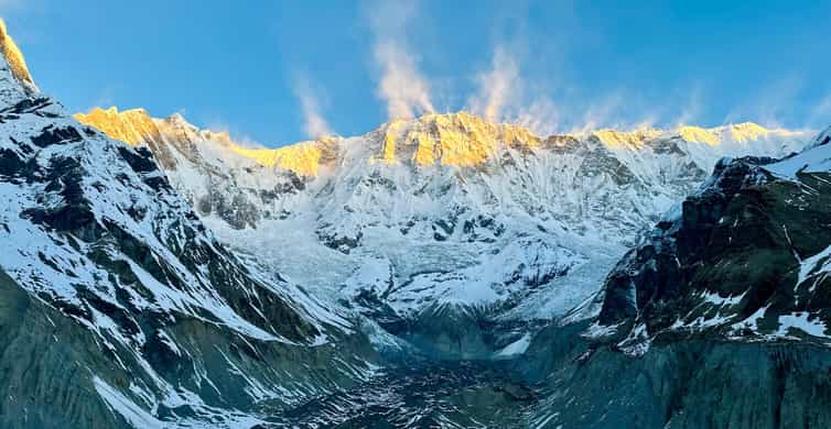 Continuing on, you trek through the serene landscape into the Annapurna Sanctuary, culminating at the Annapurna Base Camp itself. Here, you’ll be surrounded by towering giants like Annapurna I, Machapuchare (Fishtail Mountain), and Hiunchuli, experiencing spectacular close-up views that reward your trekking efforts.